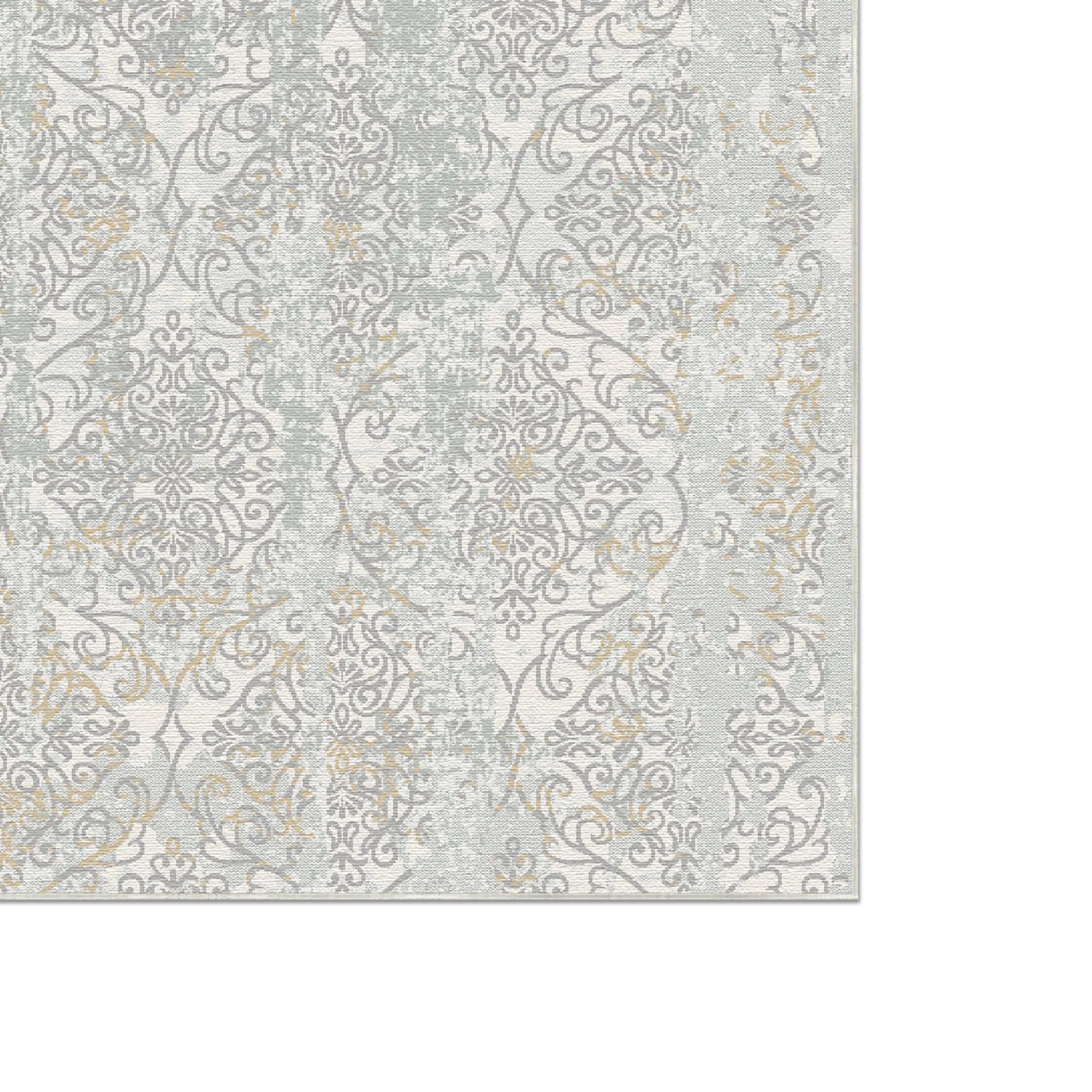 The Alabaster Lattice Distressed Light Gray Rug is a poetic expression of old-world charm meeting 21st-century functionality. This design features an all-over, intricate lattice of damask scrolls and botanical flourishes that appear to have been softly erased by time, resulting in a sophisticated "shabby chic" aesthetic. The luminous palette is dominated by a pale light gray and silver foundation, highlighted by delicate cream accents and nearly translucent golden-beige undertones. This ethereal color story creates a sense of airy spaciousness, making it an ideal choice for romantic master suites, high-end nursery designs, or elegant transitional living rooms that require a touch of quiet luxury.