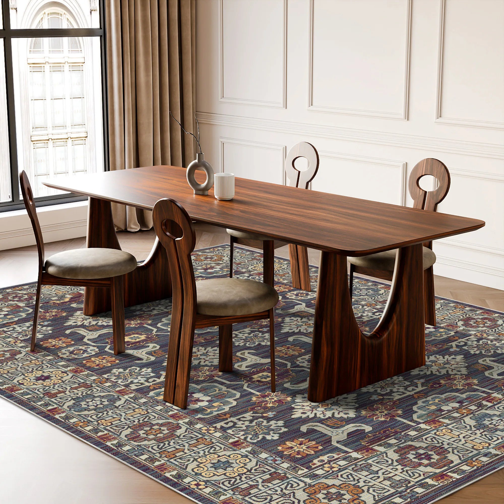 Beyond its captivating ethnic narrative, the Caspian Night is masterfully engineered for the high-performance demands of a modern sanctuary. We have woven this masterpiece from premium, high-density polyester fibers that deliver a velvety, ultra-soft touch underfoot while offering superior resilience against heavy daily traffic and statement furniture. The dark, multi-tonal palette is expertly designed not only for its dramatic impact but also for its extreme practicality, naturally masking shadows and daily activity with ease. With advanced stain-resistance technology integrated into the core of every fiber, the brilliant ivory and gold details remain vivid and sharp for years to come. Supporting this artistic expression is a high-grade, slip-resistant backing that grips firmly to your hardwood, tile, or laminate floors, ensuring the rug remains perfectly flat and secure without the need for additional pads.