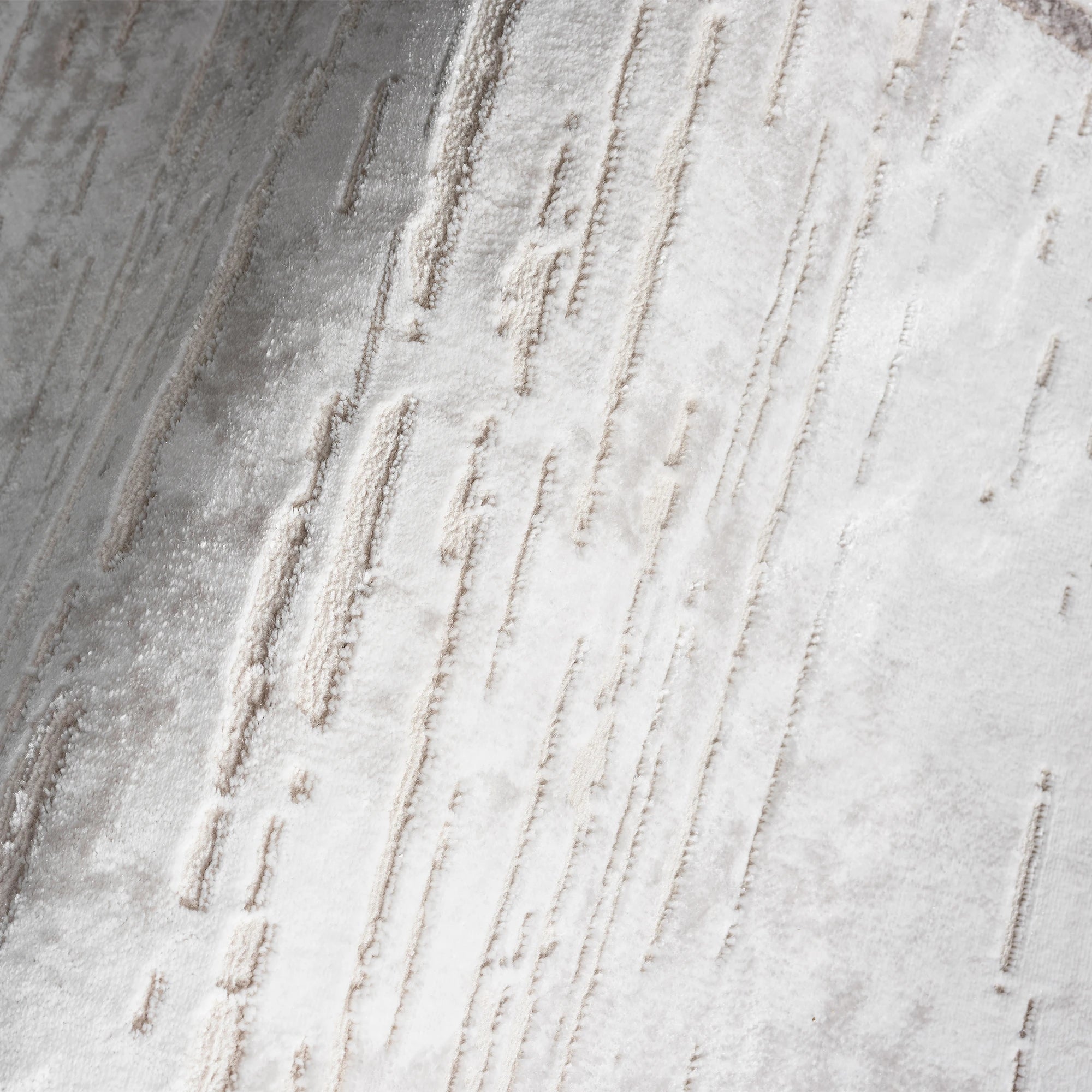Crafted in a beautiful palette of muted greys, creams, and taupe, the rug is finished with a delicate distressed effect around the edges and within the linear pattern. This faux-worn texture softens the sharpness of the geometric lines, lending it a contemporary, lived-in feel perfect for modern farmhouse, minimalist, or industrial interiors.