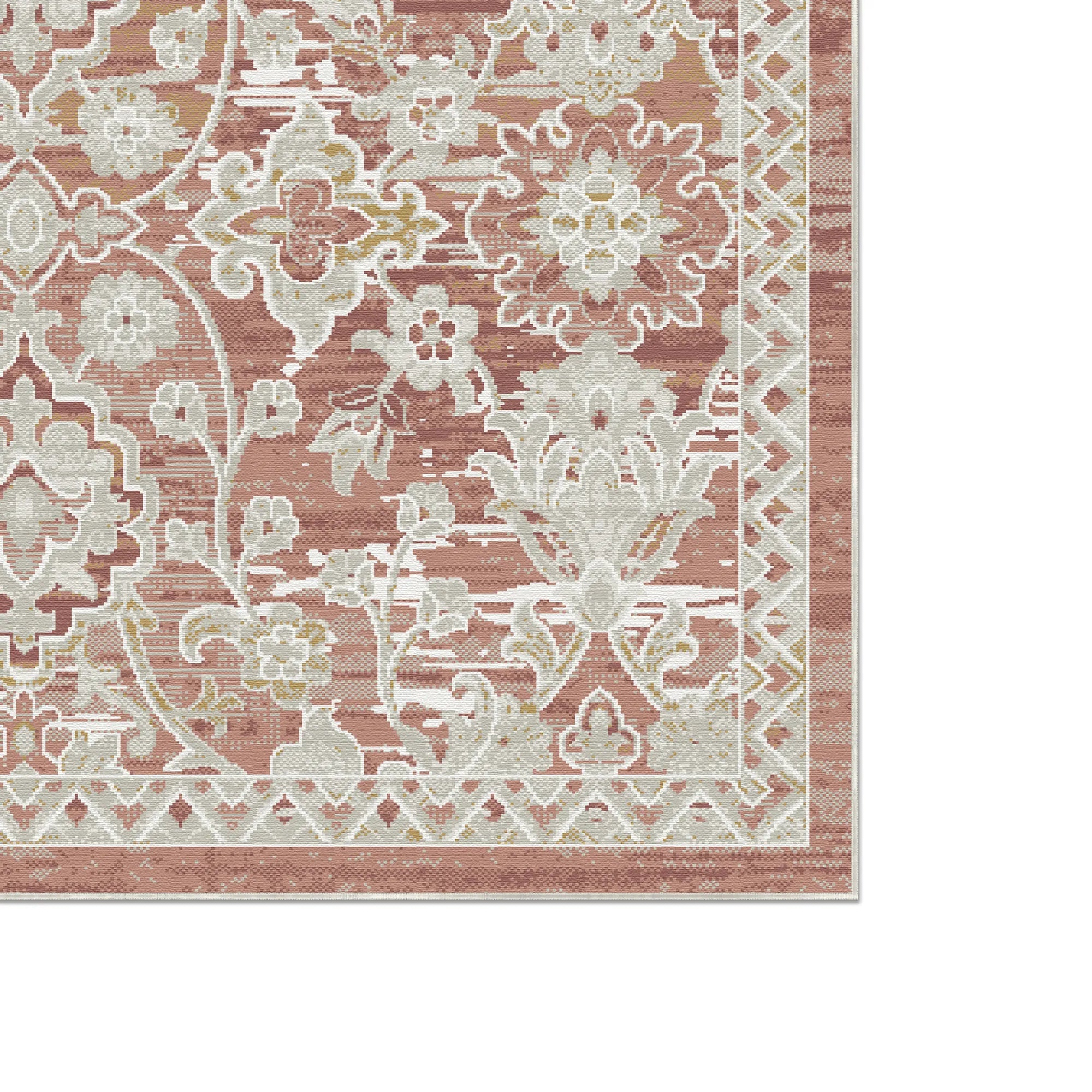 The Molten Glow of Timeless Artistry The Dynasty Antique Trellis Copper rug is a soulful and high-impact piece designed to bring a sun-drenched, "Modern Heritage" energy to your home. This model moves away from a central focus, showcasing a mesmerizing "all-over" tapestry of interlocking damask scrolls and botanical vines that flow across the entire surface. The deep, saturated copper-rust foundation provides a vibrant and grounding warmth, while the contrast of crisp ivory motifs and subtle cooling blue accents creates a high-definition visual depth. It is the definitive choice for those seeking the visual richness of a metallic-hued antique with the clean, sophisticated clarity of contemporary design.