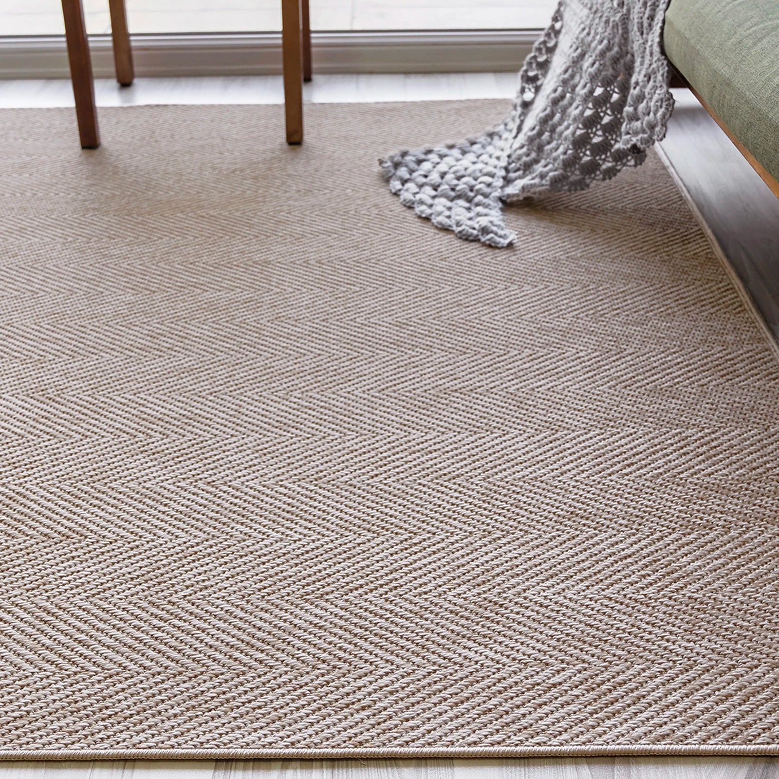 Ivory Herringbone Textured Jute Rug