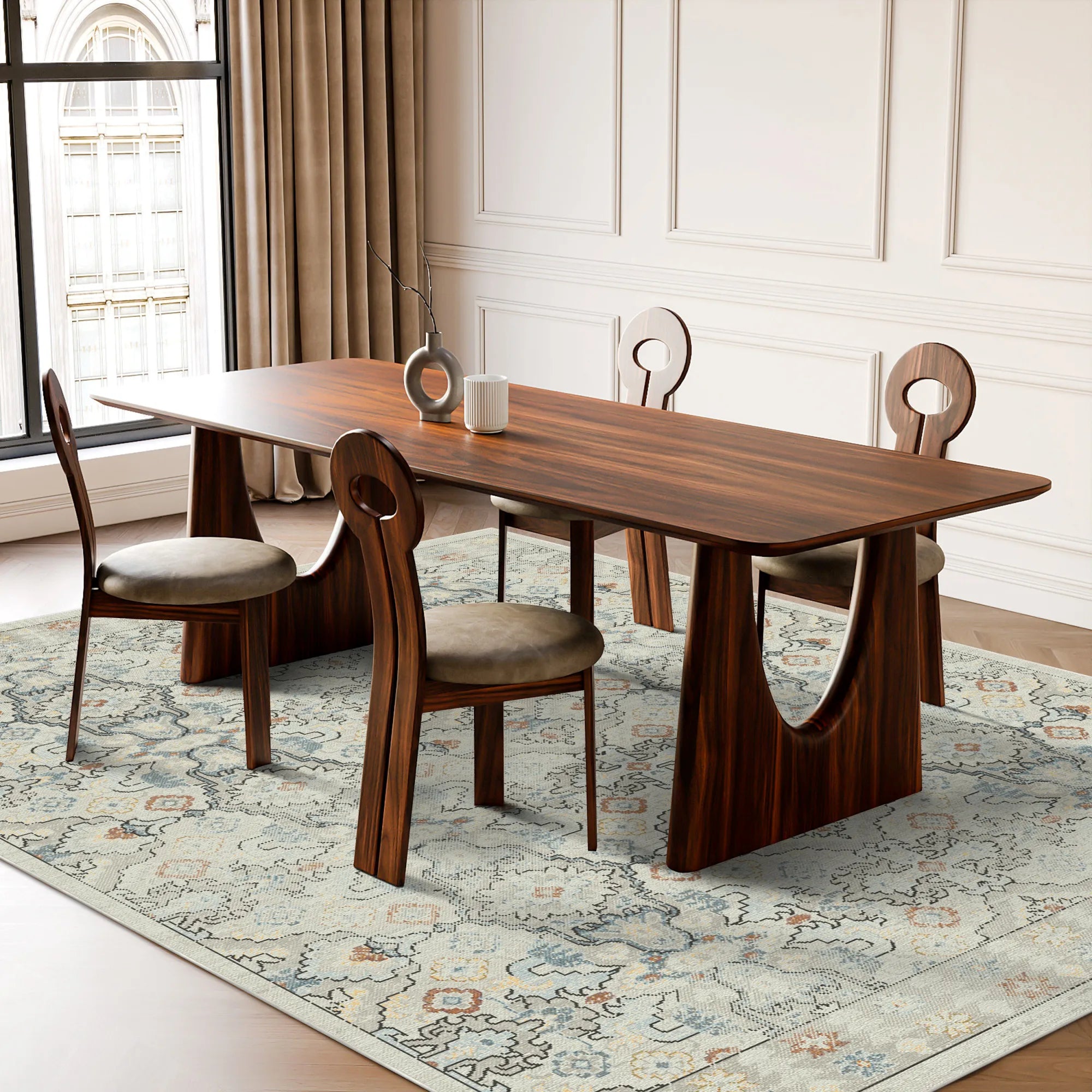 Masterfully engineered to marry this breathtaking geometric aesthetic with the rigorous demands of modern household life, the Lumina Gray Cream Geometric is woven from premium, high-density polyester fibers. This construction delivers a velvety, cloud-like touch underfoot while offering superior resilience against daily foot traffic. Our advanced color-lock technology ensures that the intricate diamond motifs and delicate neutral tones remain beautifully crisp, wash after wash. For ultimate peace of mind, it features a high-grade, integrated slip-resistant backing that grips firmly to your hardwood or tile floors, ensuring the rug remains perfectly flat and secure without the need for additional pads. Fully machine washable and optimized for robot vacuum compatibility, this rug brings the timeless allure of an intricate global tapestry into your home with zero maintenance stress.