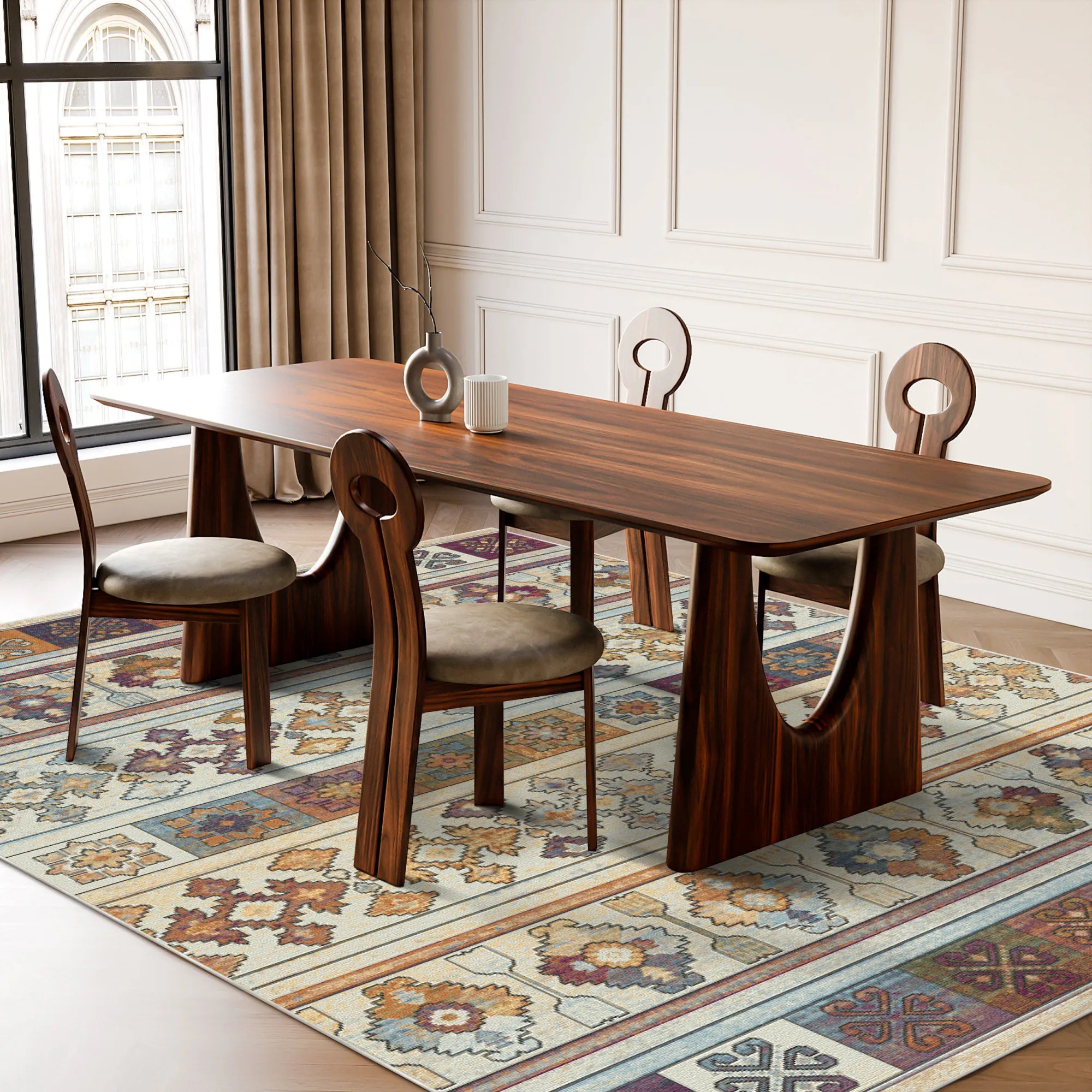 Masterfully engineered to marry this breathtaking "kilim-style" aesthetic with the rigorous demands of modern household life, the Luminous Narrative Striped is woven from premium, high-density polyester fibers. This construction delivers a velvety, cloud-like touch underfoot while offering superior resilience against daily foot traffic. Our advanced color-lock technology ensures that the warm earth tones and delicate blues remain beautifully clear, wash after wash. For ultimate peace of mind, it features a high-grade, integrated slip-resistant backing that grips firmly to your hardwood or tile floors, ensuring the rug remains perfectly flat and secure without the need for additional pads. Fully machine washable and optimized for robot vacuum compatibility, this rug brings the timeless allure of a weathered, multi-patterned masterpiece into your home with zero maintenance stress.