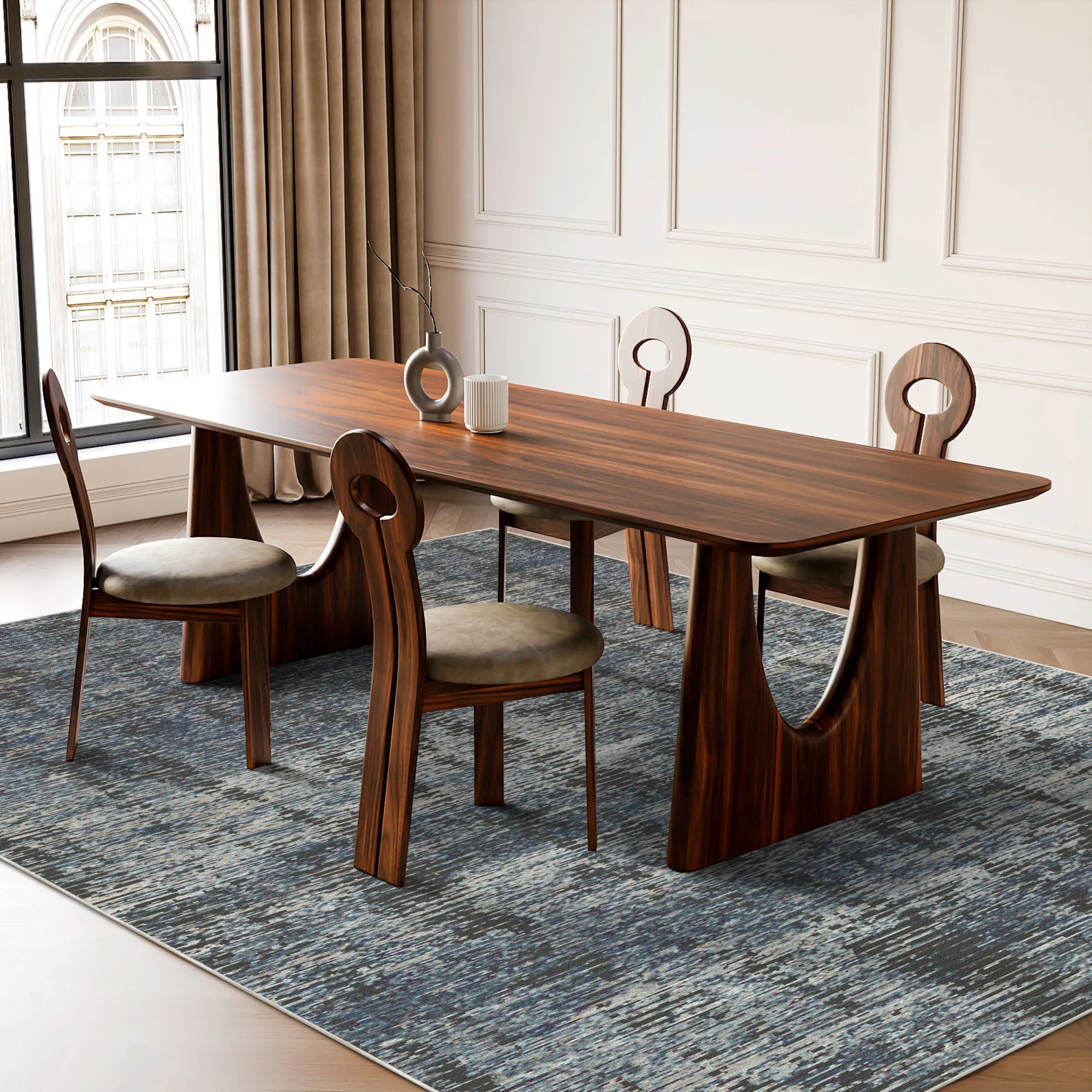 Masterfully engineered to marry this breathtaking "glitch-art" aesthetic with the rigorous demands of modern household life, the Midnight Horizon Abstract is woven from premium, high-density polyester fibers. This construction delivers a velvety, cloud-like touch underfoot while offering superior resilience against daily foot traffic. Our advanced color-lock technology ensures that the deep indigo and obsidian gray tones remain beautifully atmospheric, wash after wash. For ultimate peace of mind, it features a high-grade, integrated slip-resistant backing that grips firmly to your hardwood or tile floors, ensuring the rug remains perfectly flat and secure without the need for additional pads. Fully machine washable and optimized for robot vacuum compatibility, this rug brings the timeless allure of a weathered, modern masterpiece into your home with zero maintenance stress.