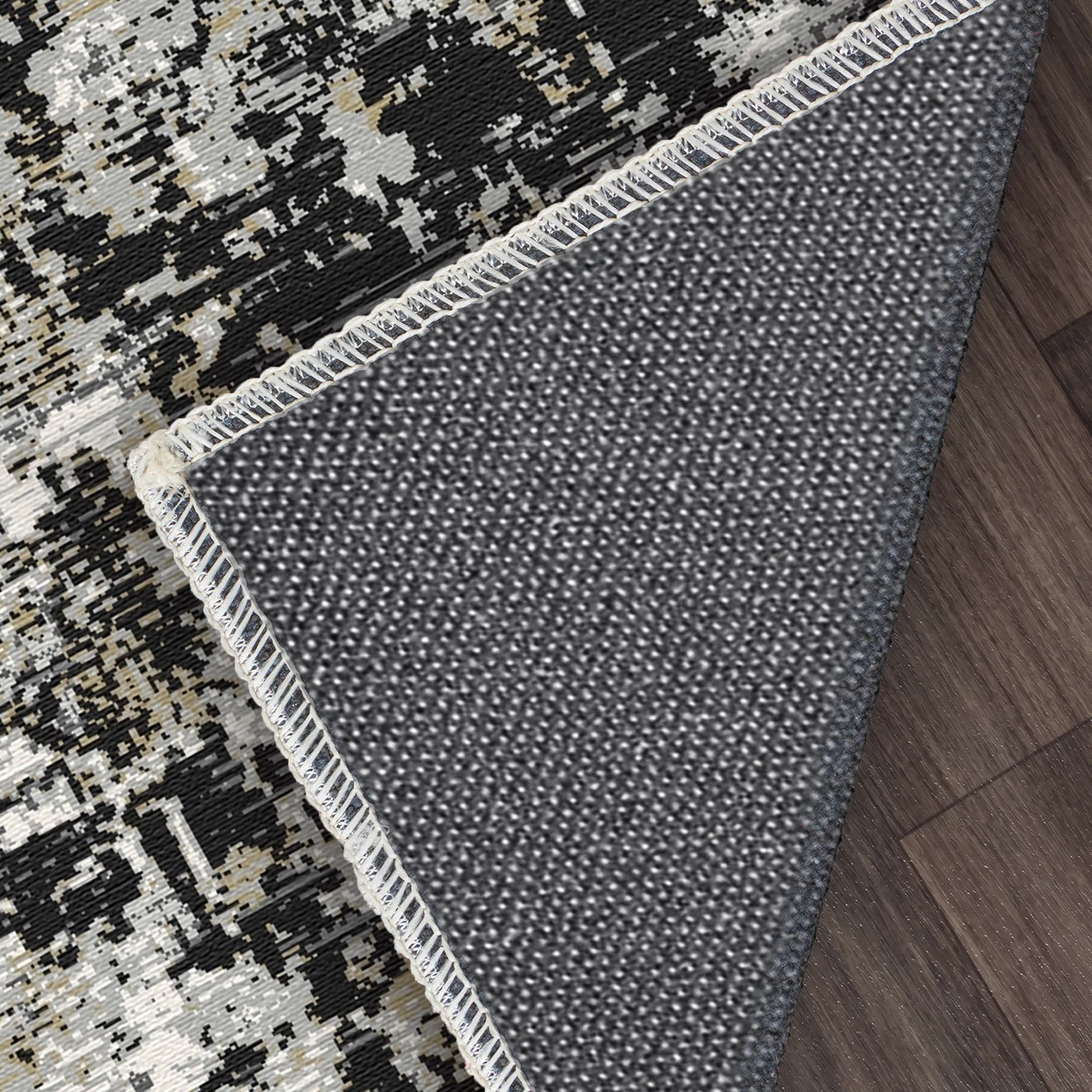 This rug is built to handle the pace of modern life without losing its luster. It is produced using state-of-the-art digital printing technology, ensuring that the intense black tones and shimmering gold details are rendered with incredible depth and clarity. The surface is crafted from premium polyester, offering a silky-smooth touch and exceptional durability. The foundation consists of a natural cotton base, providing a soft, breathable, and stable structure. Combining bold artistry with total practicality, this rug is fully machine washable, ensuring that its dark, moody aesthetic remains sharp and clean with minimal effort.