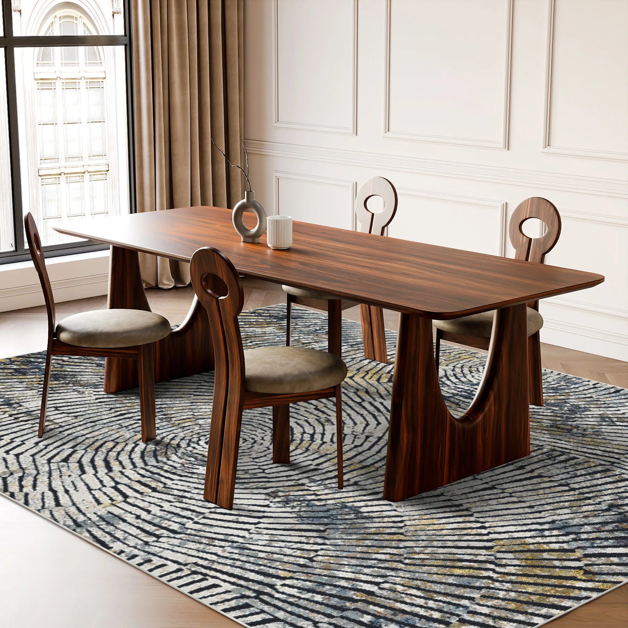 While it serves as a stunning piece of abstract art for your floor, this rug is designed for the ease of everyday living. Woven from high-quality, resilient polyester fibers, it offers a durable surface that withstands high traffic without fading. The integrated non-slip backing ensures the rug stays firmly anchored, providing safety and stability. Perfectly suited for modern households, it is fully machine washable for effortless cleaning and features a low-profile, flat-woven texture that allows robot vacuums to navigate across it smoothly without obstruction.