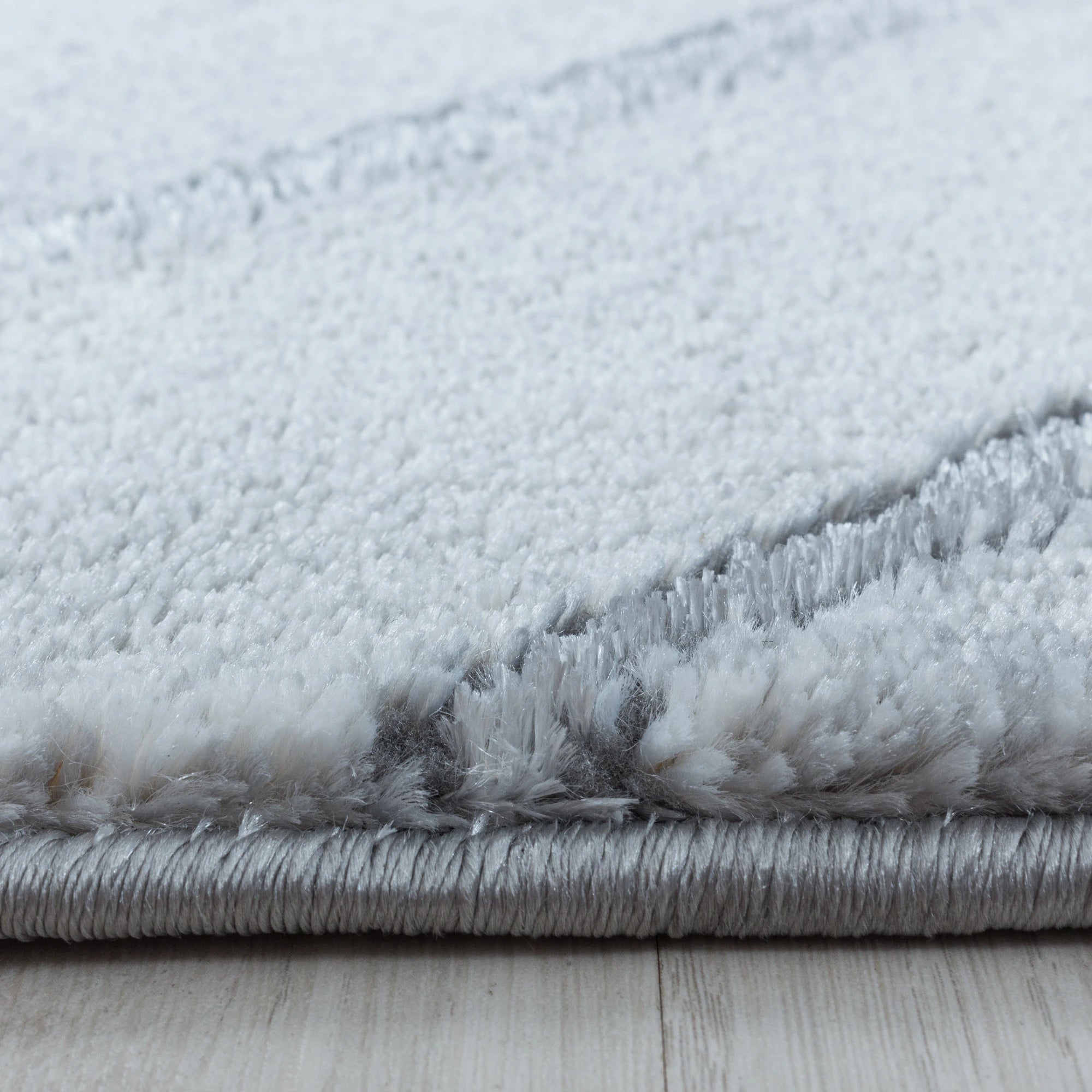 Create a foundation of cool, modern beauty with this stunning rug, featuring a classic marble pattern in a sophisticated silver. The graceful, swirling veins mimic natural stone, providing a luxurious and artistic touch to any room. Crafted from a soft and durable Polypropylene/Polyester blend, it combines an opulent look with everyday practicality.
