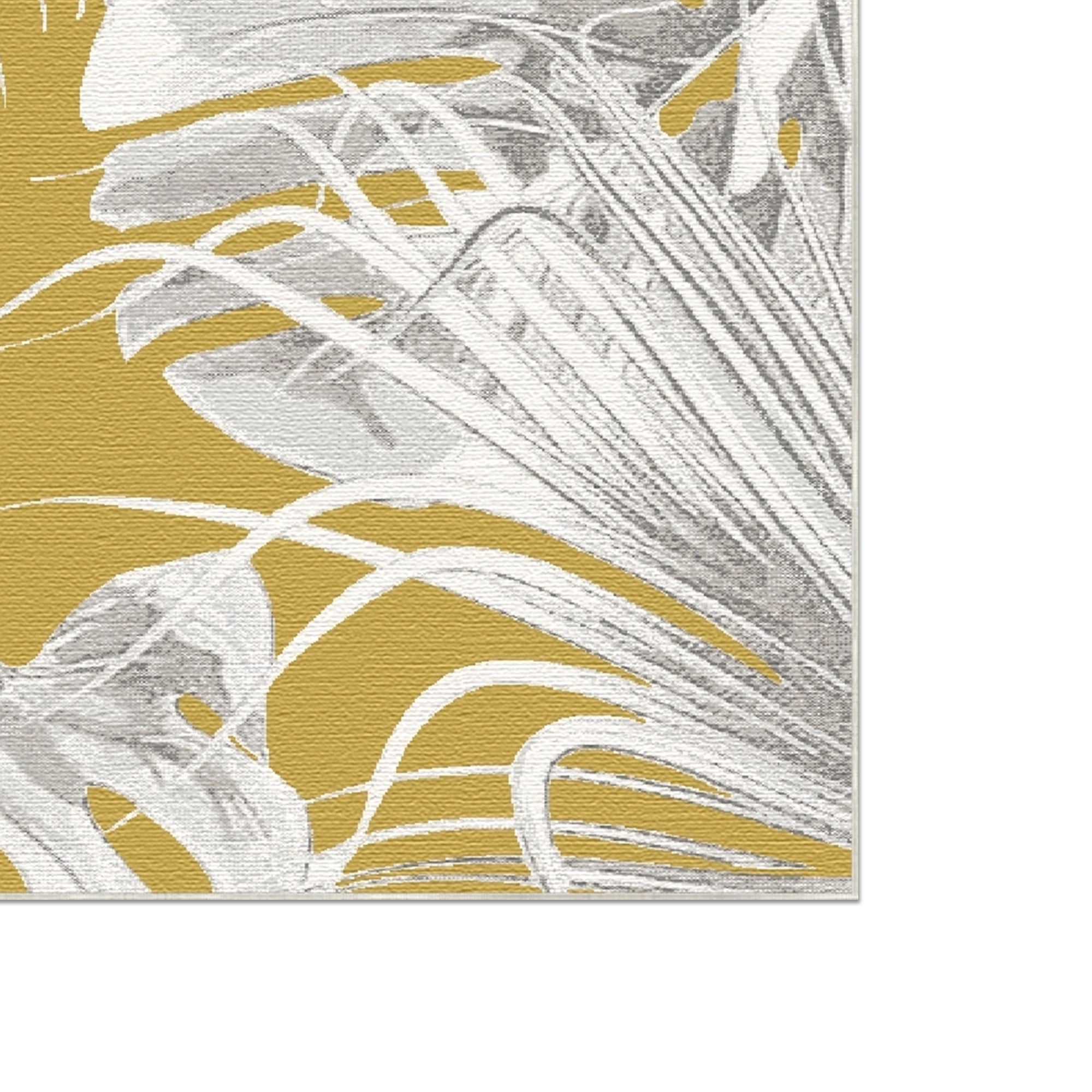 Infuse your home with the warm and energetic vibes of the tropics with our Mustard Yellow Exotic Tropical Rug. This bold design features large-scale tropical foliage, including elegant Monstera leaves and sweeping palm fronds, rendered in a sophisticated palette of charcoal grey and crisp white. Set against a vibrant mustard yellow background, this rug serves as a stunning focal point that brings a sunny, modern botanical energy to any interior space.