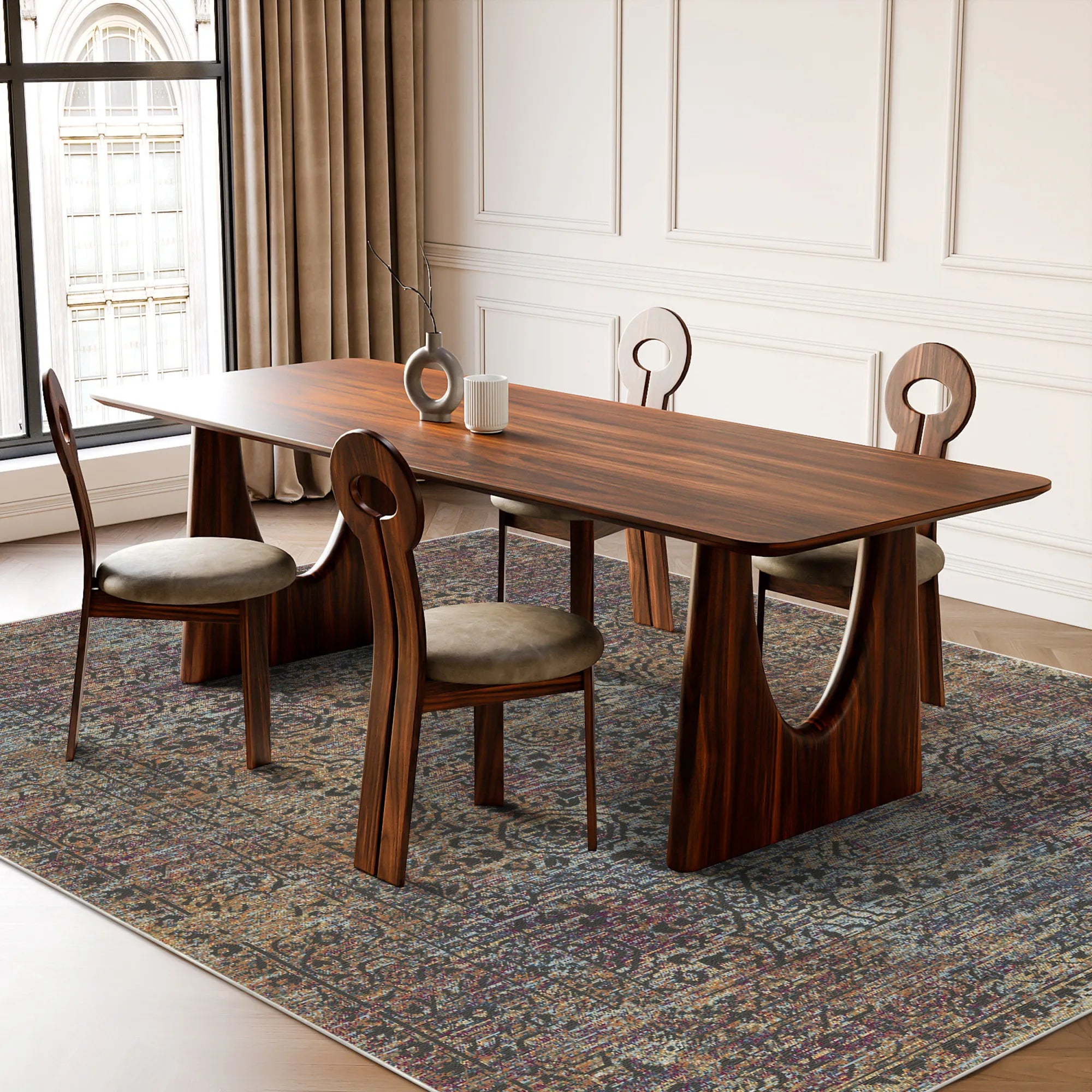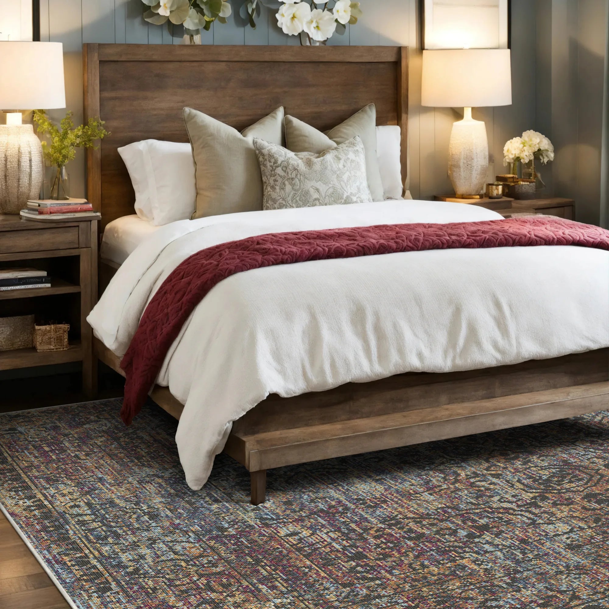 Immerse your space in the moody grandeur and fragmented history of the Obsidian Archive Floral Washable Rug. This design is a masterpiece of the "erased" aesthetic, featuring an all-over sprawl of intricate botanical scrolls and ghost-like medallions that appear to surface and dissolve across the field. The palette is a profound exploration of nocturnal jewel tones, layering deep midnight navy and royal plum with smoldering strikes of rust orange and ochre gold. Masterfully distressed with heavy horizontal striations and an extreme stone-wash patina, the rug possesses the soulful character of a rare antique textile recovered from a shadow-filled archive. It is a peerless choice for a dramatic dining room, a sophisticated library, or a contemporary master suite that demands a bold, high-texture foundation with a mysterious, historical soul.