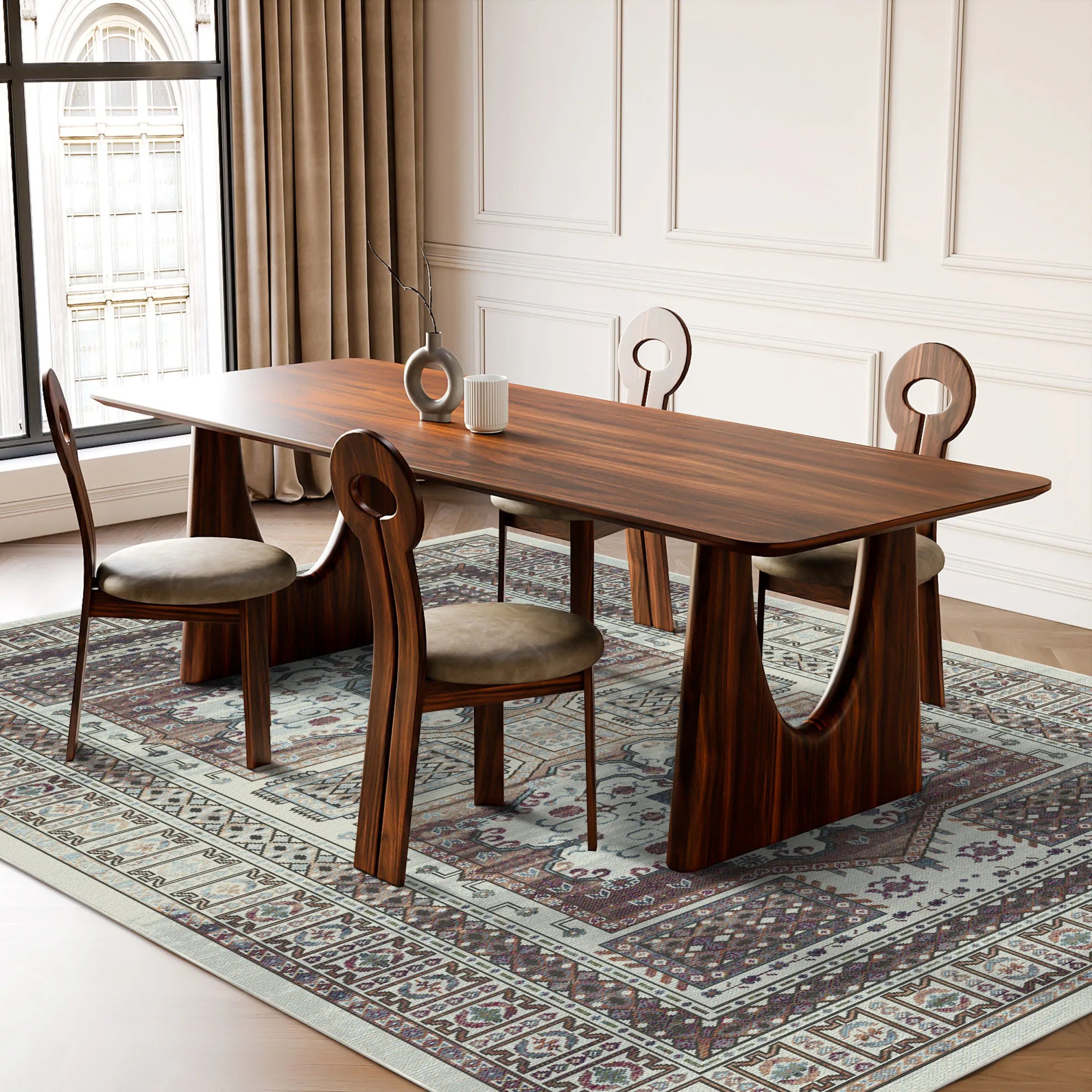 Modern luxury is defined by the freedom to maintain a curated, high-end home with total ease. The Samarkand Ivory is fully machine washable, allowing you to easily restore its radiant luster and high-definition details with a simple cycle in your home washing machine. Furthermore, its sleek and low-profile construction is specifically optimized to be robot vacuum friendly, allowing your automated cleaners to glide seamlessly over the intricate ornamental borders without any interruption. This is more than just a floor covering; it is a durable, functional piece of art that invites the nomadic spirit and architectural zarafet of the East into your home, promising a beautiful and stress-free foundation for your contemporary lifestyle.