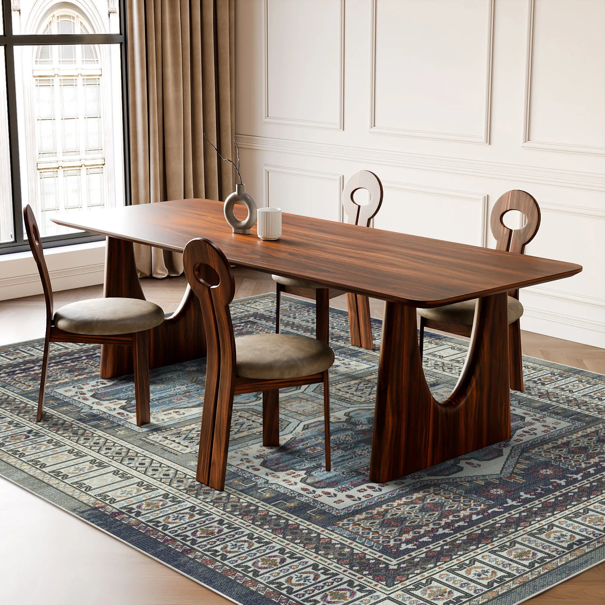 Step into a world of timeless artistry with the Samarkand Night Ethnic Medallion Washable Rug, a piece that captures the mystical soul of ancient Silk Road trade hubs. The design is a masterclass in traditional symmetry, featuring a striking double-nested medallion that serves as a powerful focal point, drawing the eye toward its intricate botanical and geometric heart. A profound field of deep night-sky sapphire provides a majestic stage for a symphony of terracotta, honey-gold, and slate blue accents. Every corner of this rug tells a story, with multi-layered architectural borders that frame the central motif like the ornate tilework of a grand caravanserai. Whether you are looking to anchor a soulful bohemian living room, add a layer of prestige to a formal dining area, or bring a touch of global history to a modern study, this rug offers a peerless blend of cultural depth and sophisticated aesthetics.