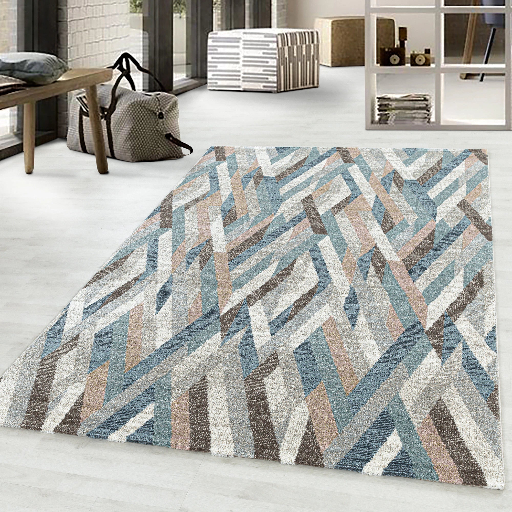 Tappeto moderno a strisce per soggiorno | Multicolore