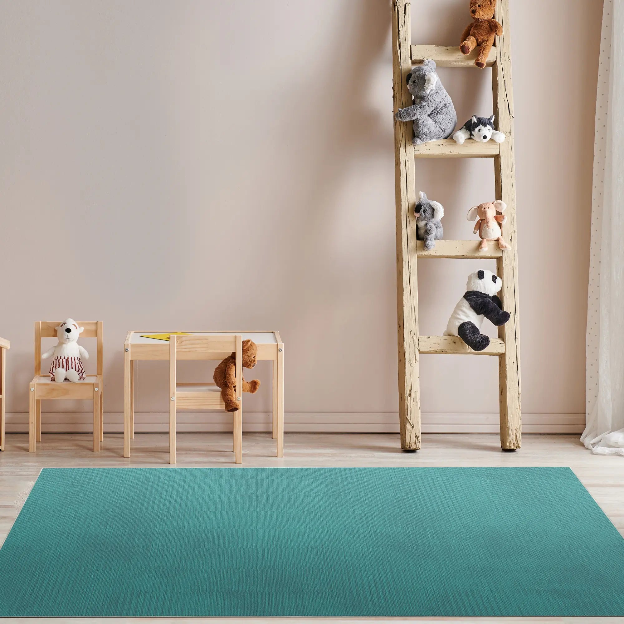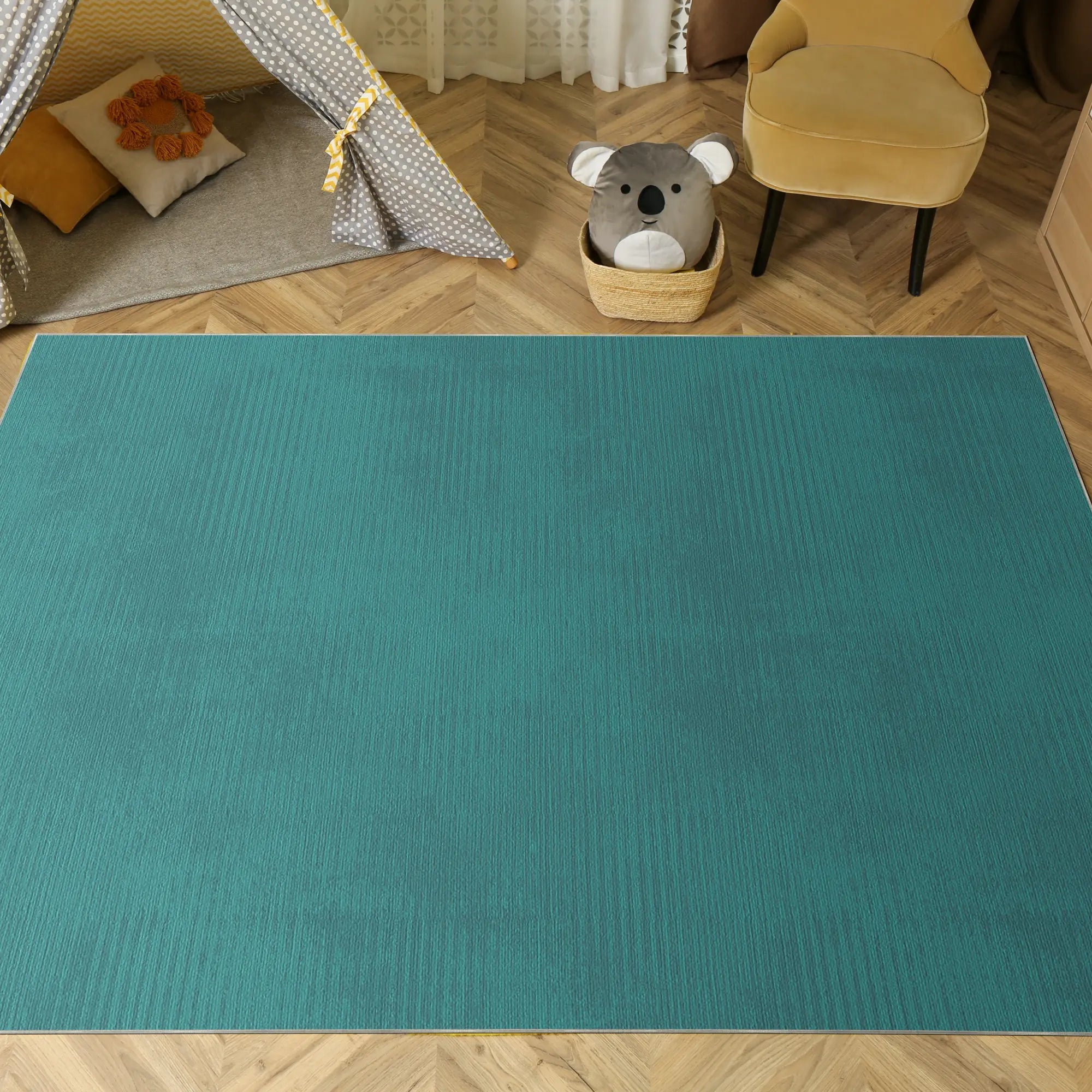 Aggiungi un tocco di colore vibrante alla tua casa con il nostro Tappeto Lavabile Testurizzato Verde Turchese. Questa splendida copertura per pavimenti presenta una base verde turchese intensa arricchita da una delicata texture mélange con sottili striature orizzontali. Il suo design solido, versatile e minimalista lo rende una base perfetta per un soggiorno moderno, una cameretta vivace o una luminosa camera da letto in stile costiero. Sappiamo che mantenere la casa pulita è una priorità assoluta, ed è proprio per questo che questo tappeto di alta qualità è completamente lavabile in lavatrice. Puoi facilmente mantenere i tuoi pavimenti impeccabili e completamente igienici senza lo stress di costose pulizie professionali. Ogni volta che si accumulano macchie, sporco o polvere, basta mettere il tappeto in lavatrice per un rapido e semplice rinfresco. La struttura resistente, morbida e a pelo corto offre una superficie confortevole per camminare a piedi nudi e per il gioco quotidiano, garantendo che questo elegante pezzo sia altamente pratico per ogni famiglia impegnata.