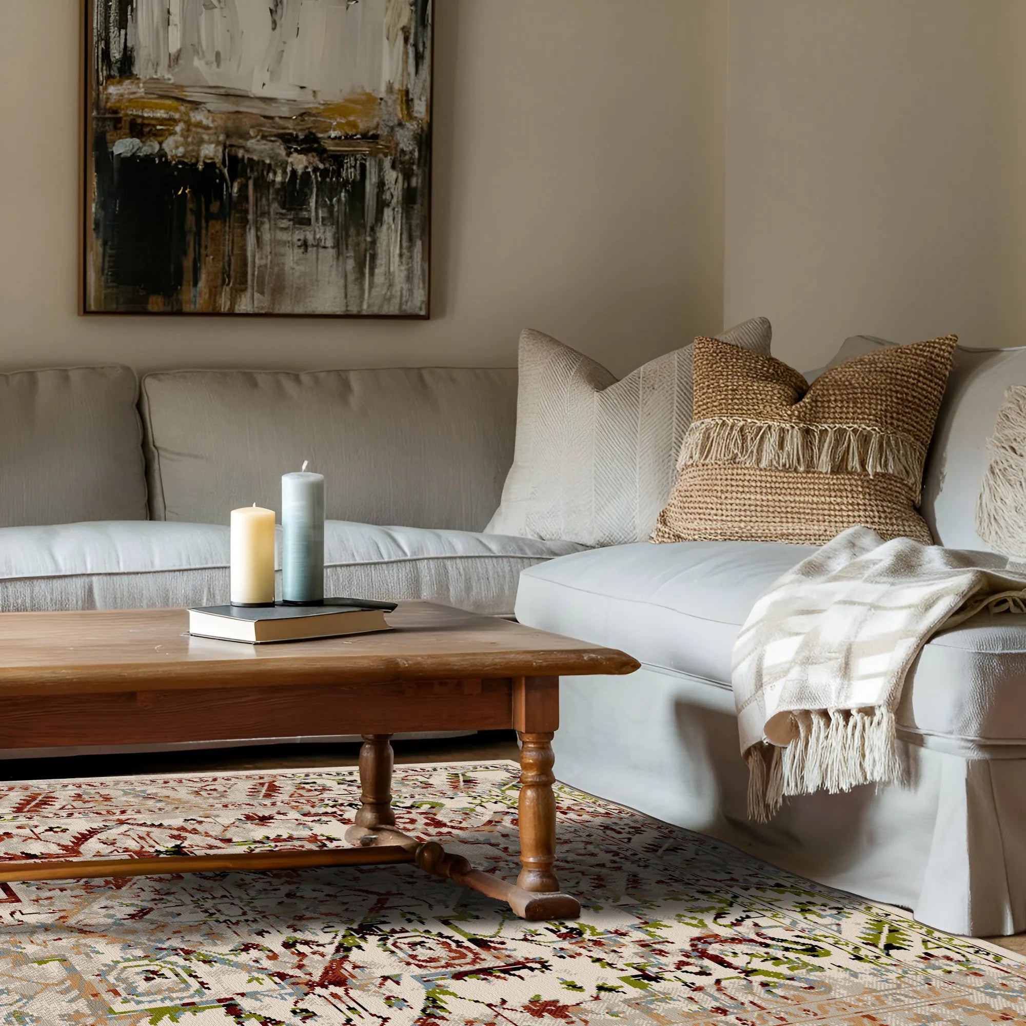 Celebra lo spirito vibrante della storia con il Tappeto Lavabile Vintage Ephesus Rust. Mentre i suoi omologhi della serie offrono una neutralità discreta o un dramma scuro, questo design porta l’energia vivace del mondo antico nella tua casa. Il classico medaglione geometrico in stile Heriz si staglia su uno sfondo caldo crema e beige, fungendo da tela luminosa per i motivi intricati resi in un ricco rosso ruggine, verde oliva e blu ardesia. La finitura consumata ammorbidisce la palette colorata, creando un aspetto sbiadito dal sole e vissuto dal tempo che appare sia grandioso che accogliente. È il perfetto ponte tra l’eleganza tradizionale e il calore bohemien, ideale per ravvivare un soggiorno neutro, ancorare un tavolo da pranzo o aggiungere carattere a un ampio ingresso.