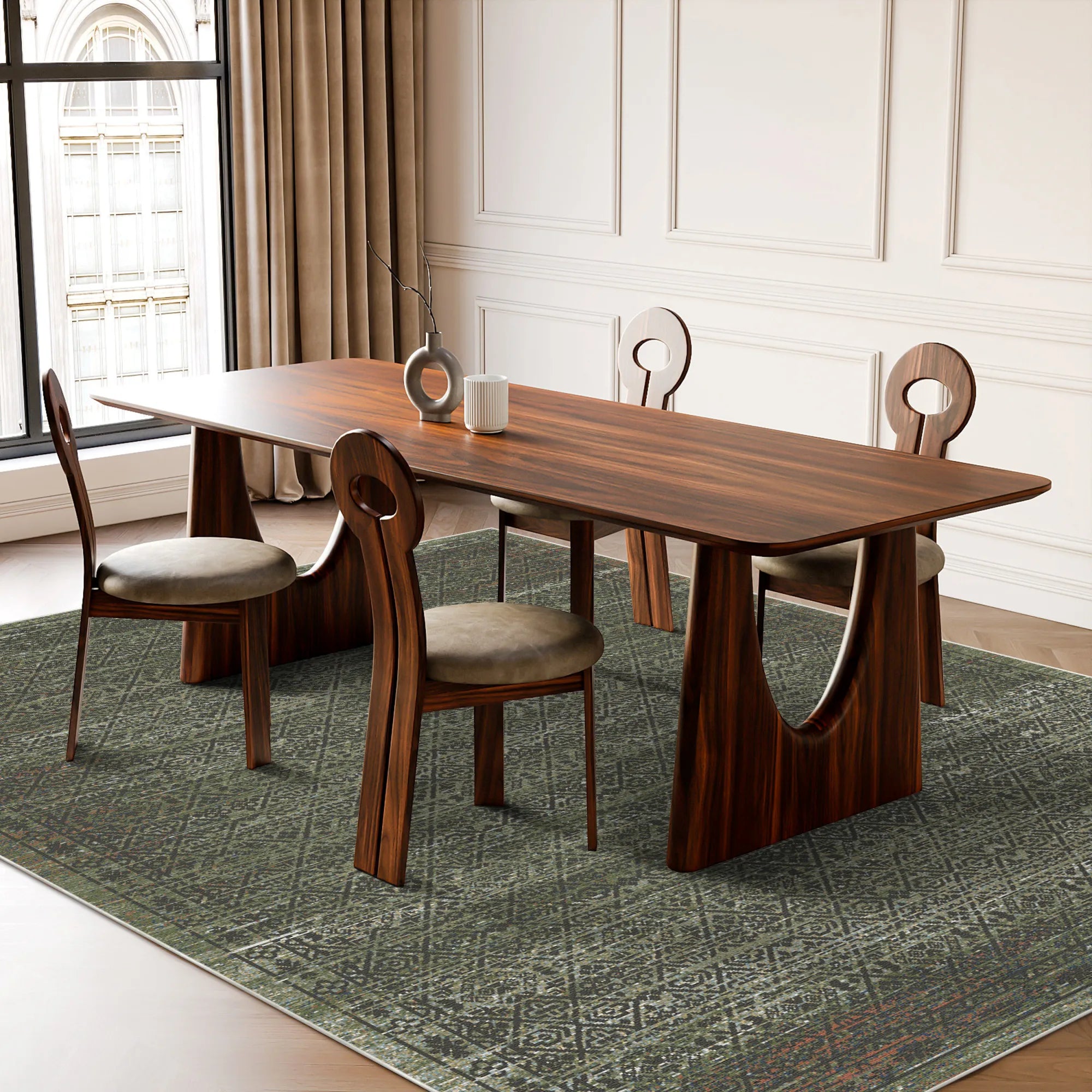 Masterfully engineered to marry this breathtaking "shadow-work" aesthetic with the rigorous demands of modern household life, the Verdant Cipher Geometric is woven from premium, high-density polyester fibers. This construction delivers a velvety, cloud-like touch underfoot while offering superior resilience against daily foot traffic. Our advanced color-lock technology ensures that the leafy green tones and subtle ivory accents remain beautifully saturated, wash after wash. For ultimate peace of mind, it features a high-grade, integrated slip-resistant backing that grips firmly to your hardwood or tile floors, ensuring the rug remains perfectly flat and secure without the need for additional pads. Fully machine washable and optimized for robot vacuum compatibility, this rug brings the timeless allure of a weathered, botanical masterpiece into your home with zero maintenance stress.