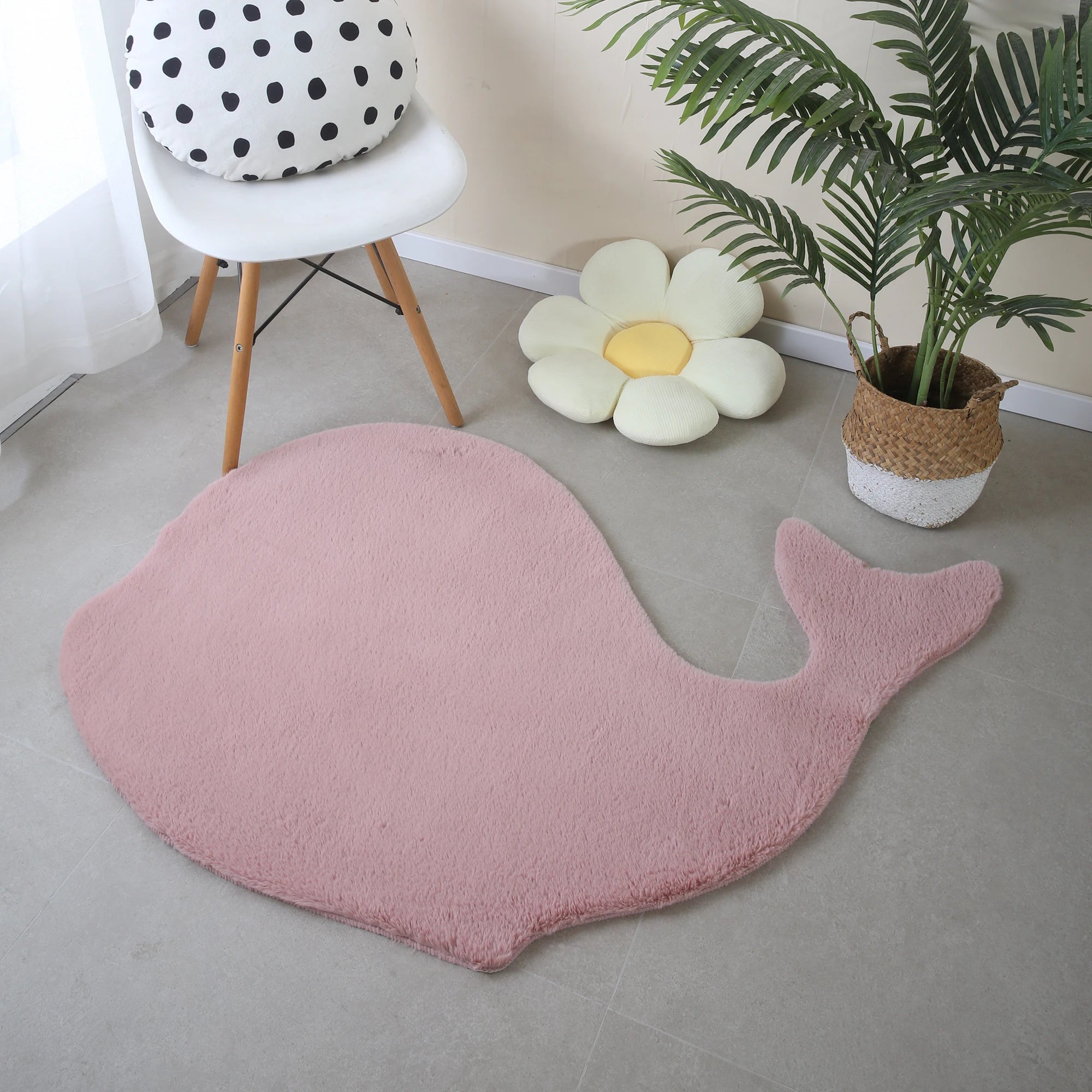Introduce a touch of gentle fun to your child's room with this adorable Whale Shape Rug in a soft pink. The sweet, modern design creates a friendly and inviting atmosphere, perfect for a nursery or playroom. Crafted from soft and durable polyester, it provides a safe and comfortable 25.0mm pile surface for tummy time and imaginative play.